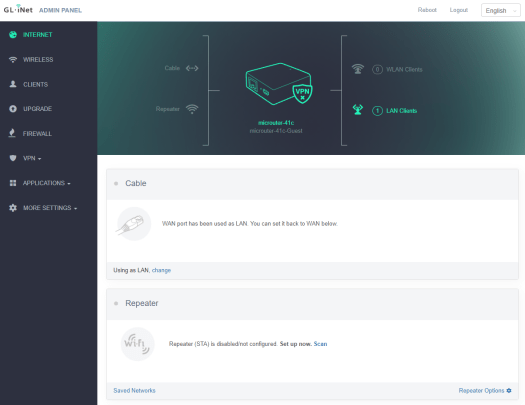 Note: If your browser always redirects to LuCI (http://192.168.8.1/cgi-bin/luci), you can visit: http://192.168.8.1/index instead of http://192.168.8.1.